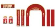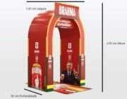 | O pórtico serve para criar um "portal" que separa o ambiente externo (corredor da feira, rua, área comum) do universo da marca. Ele sinaliza visualmente onde a experiência começa, dando as boas-vindas ao visitante de forma imponente. |